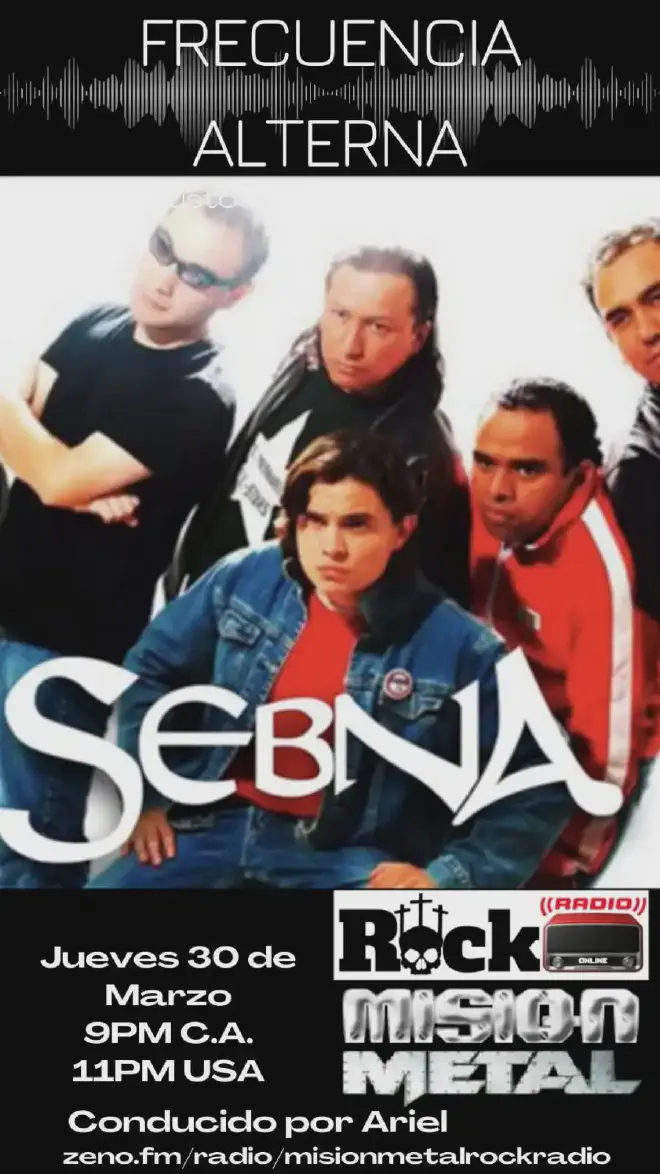 Amigos y amigas radio escuchas de todas partes del mundo, esta noche tendremos el segundo programa de la tercera temporada de Frecuencia Alterna y la serie Gustos Culposos en donde tendremos como invitado especial a la banda Sebna, así que no se lo pueden perder a partir de las 9 P.M. Hora Centroamérica y solo por Misión Metal Rock Radio